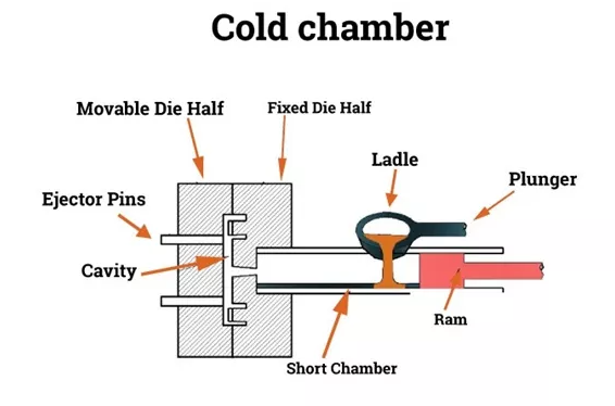 This is a high-pressure die casting process that involves pouring the melted material into a cold chamber and then injecting it into the die. The hydraulic system used in a cold chamber process is similar to that used in a hot chamber process. However, a higher pressure of between 2000 and 20000 psi could be necessary.